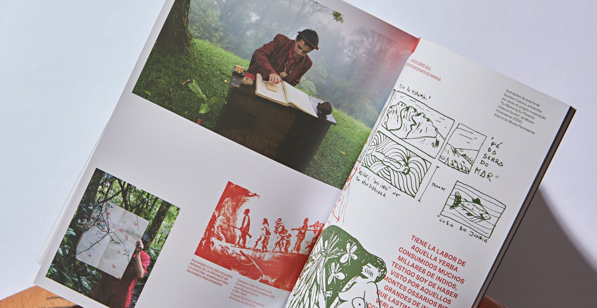 Projeto gráfico para fotolivro/publicação de Gustavo Caboco com texto de Juliana Kerexu e fotografia de Walter Thoms. Um livro que aborda as relações entre os processos de colonialidade da indústria da erva-mate, os extrativismos e a presença indígena no Paraná.