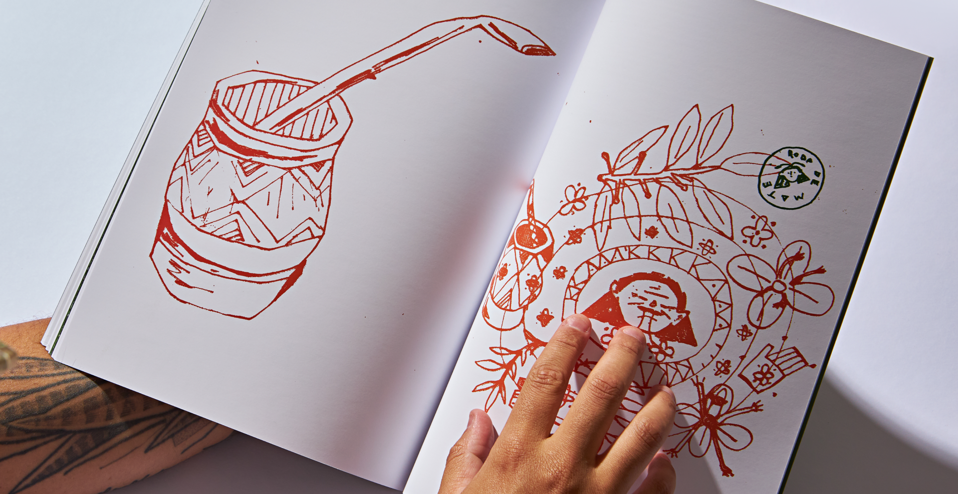 Uma narrativa gráfica construída em torno da erva-mate que propõe reflexões e diálogos a respeito de sua origem e história ancestral. Dividida em três momentos Museu, Serra e Mar, o livro articula diferentes linguagens partindo da imagem e palavra para abrir abordagens visuais que não criem limite entre elas.